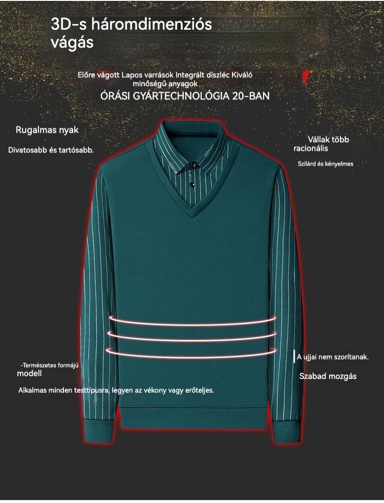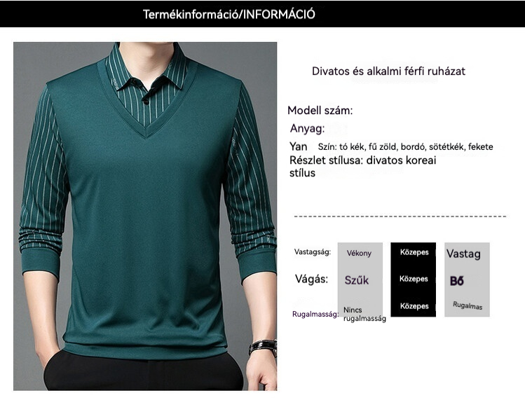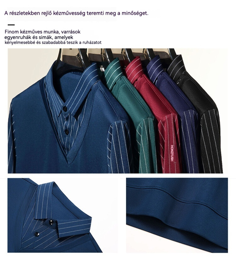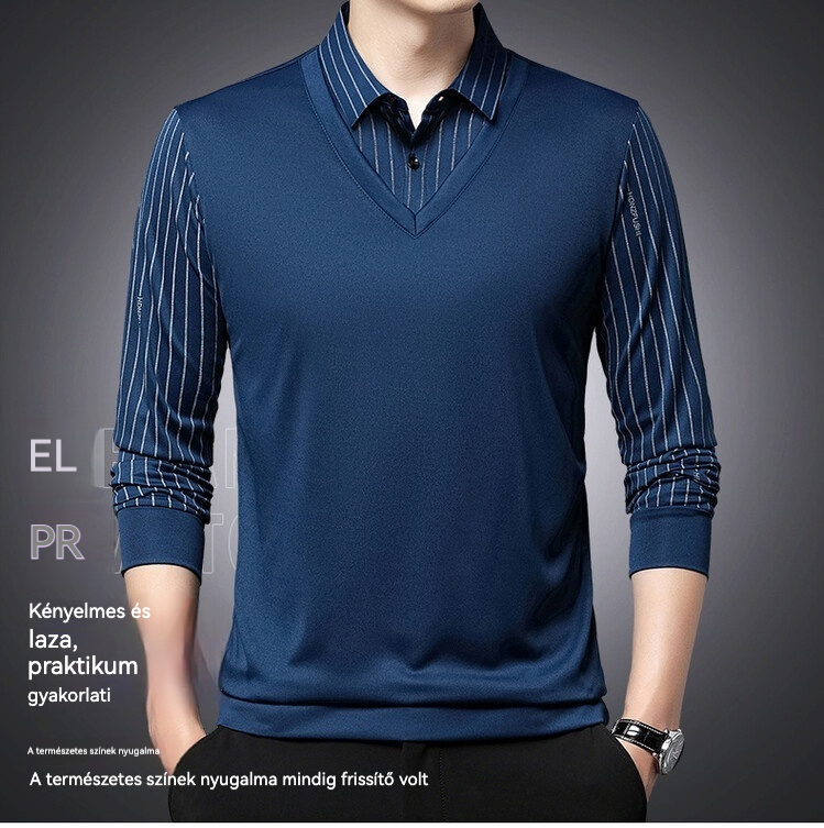 👔Divatos férfi hosszú ujjú póló inggallérral|Középkorú férfiaknak, kényelmes és elegáns réteges hatású felső