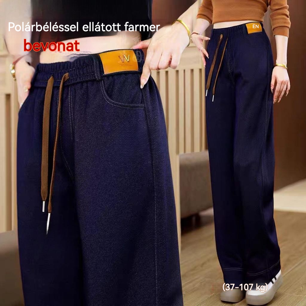 【37-107KG】🔥Polár bélésű farmer👖Új, magas derekú, lezser nadrág