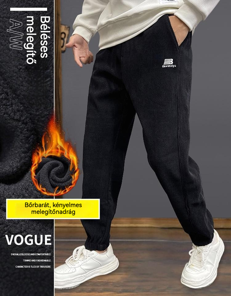 【M-5XL】Férfi meleg, lezser nadrág polár béléssel őszi/téli használatra