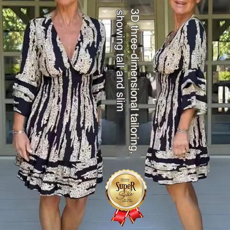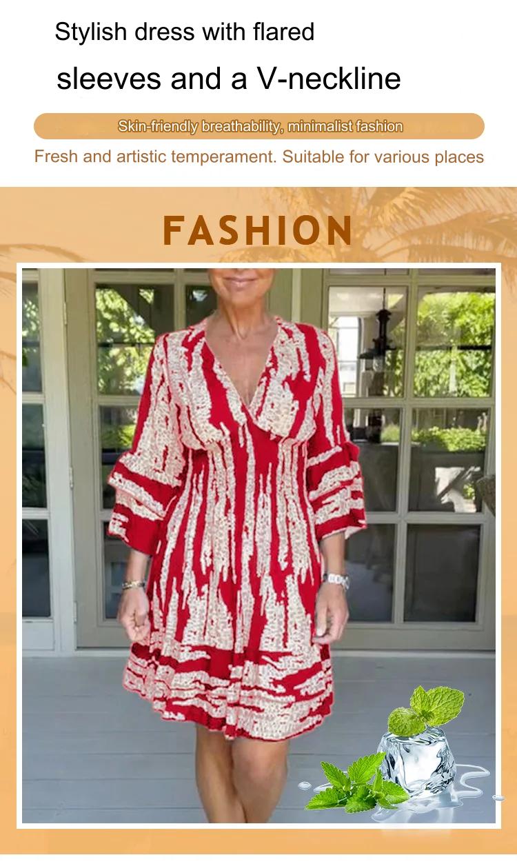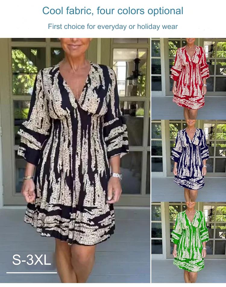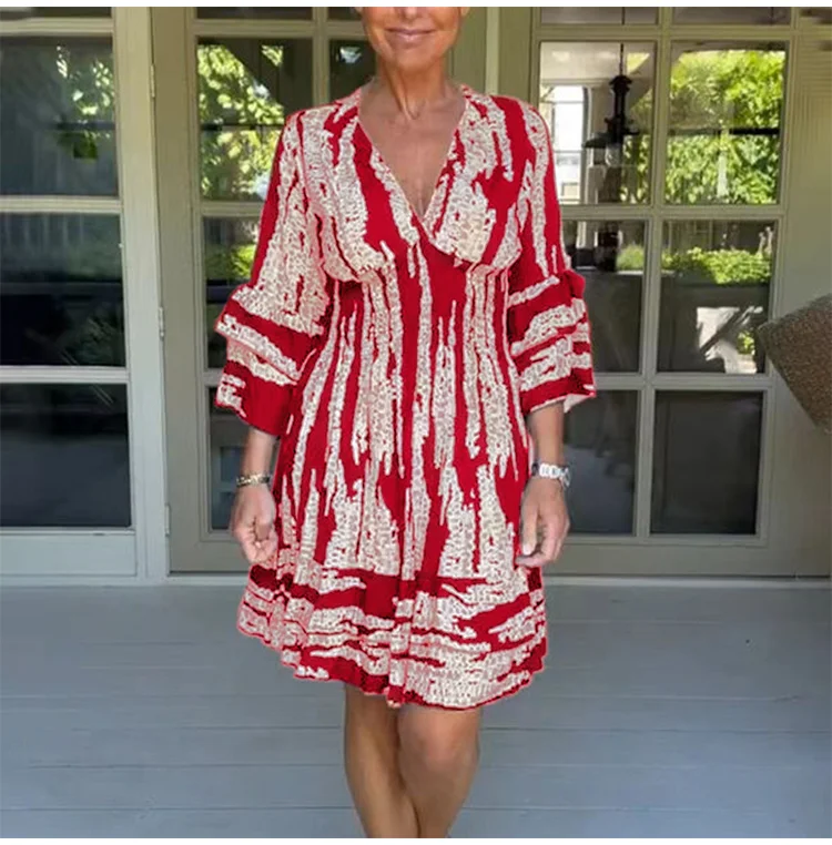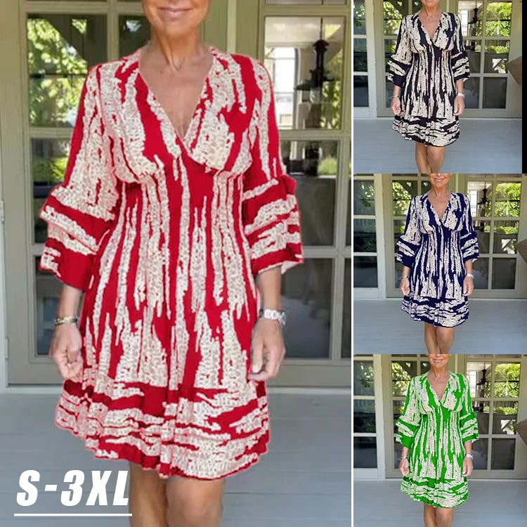 【S-3XL】 2025-as új női V nyakú, csengős ujjú ruha
