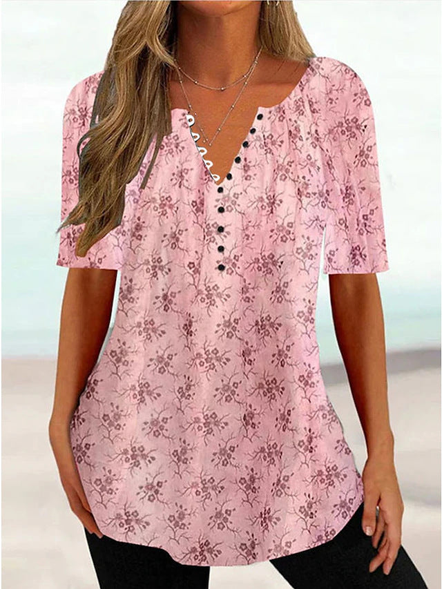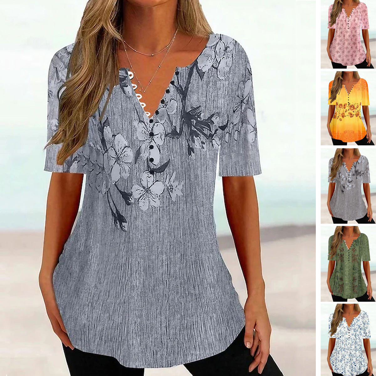 【S-5XL】🔥2024 nyári alkalmi rövid ujjú, gombos V nyakú ing