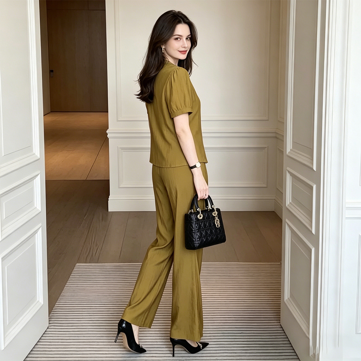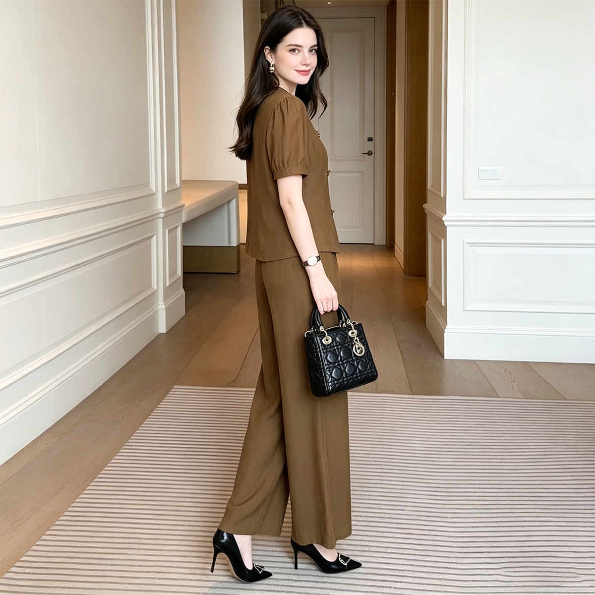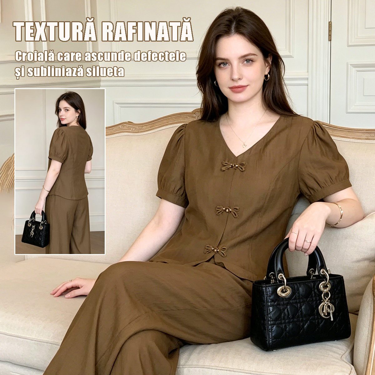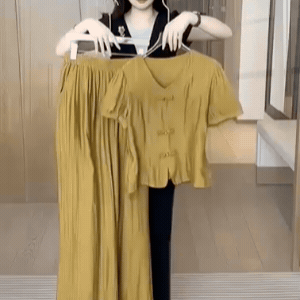 Set Elegant Stil Nou Chinezesc: Top cu Nasturi Tradiționali și Pantaloni Largi cu Talie Înaltă, Compleu de Lux din Două Piese