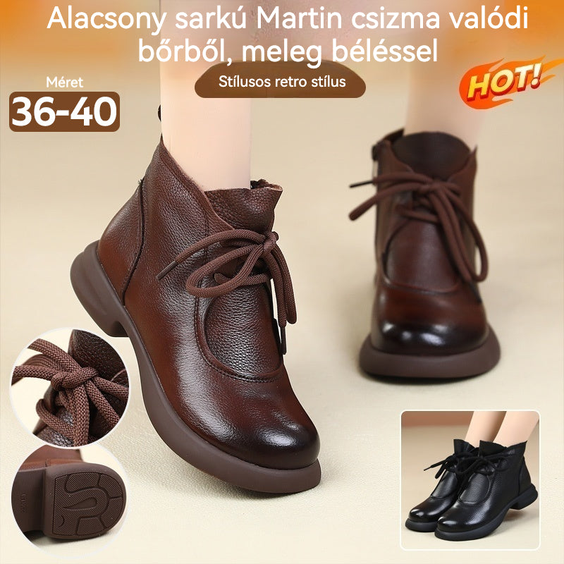 【50% OFF🔥7 napon belül kézbesítjük🔥】🔥Alacsony sarkú Martin csizma valódi bőrből, meleg béléssel