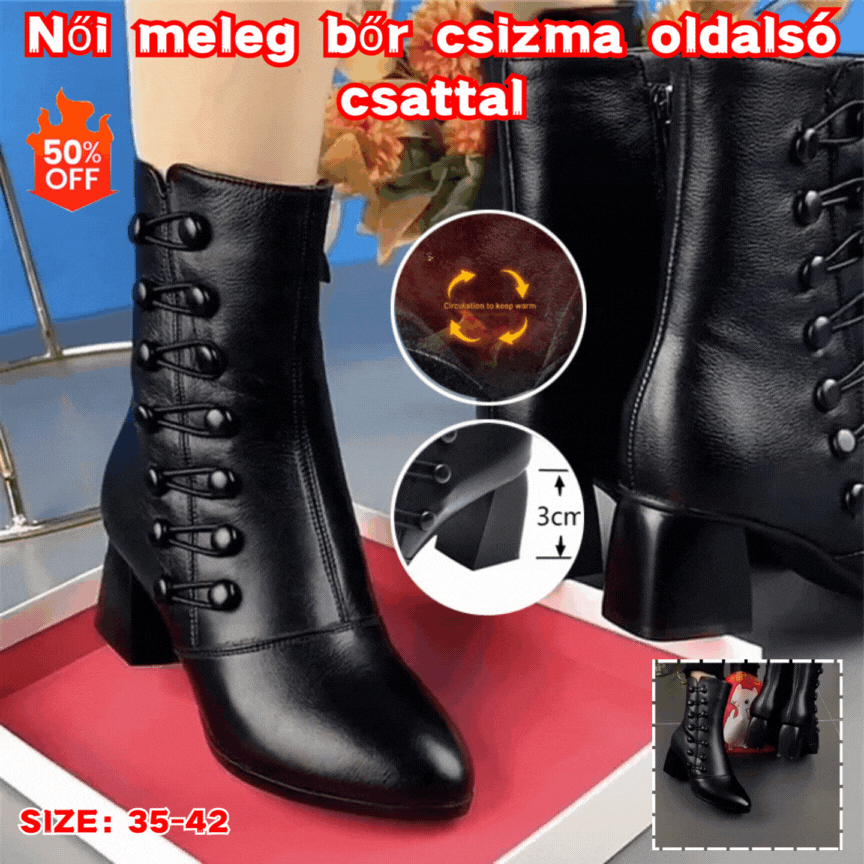 【50% OFF🔥7 napon belül kézbesítjük🔥】【35-42】Eladó🔥Női meleg bőr csizma oldalsó csattal