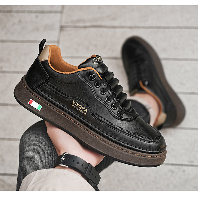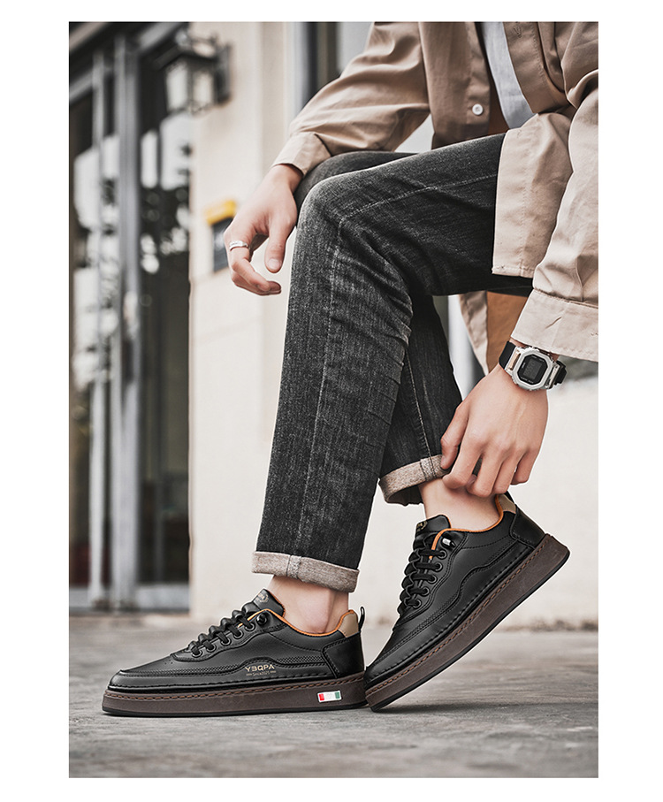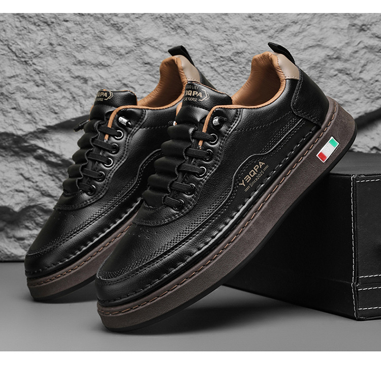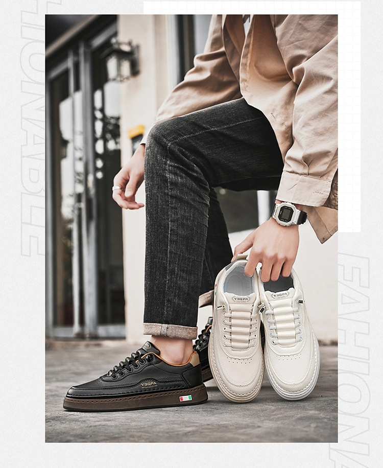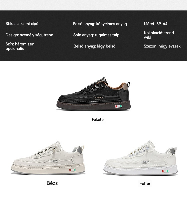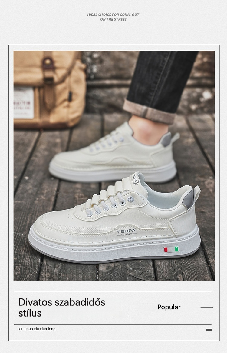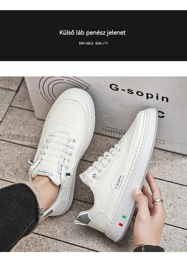 【39–44】Új férfi sportcipő valódi bőrből, lapos talppal, csúszásmentes kivitelben