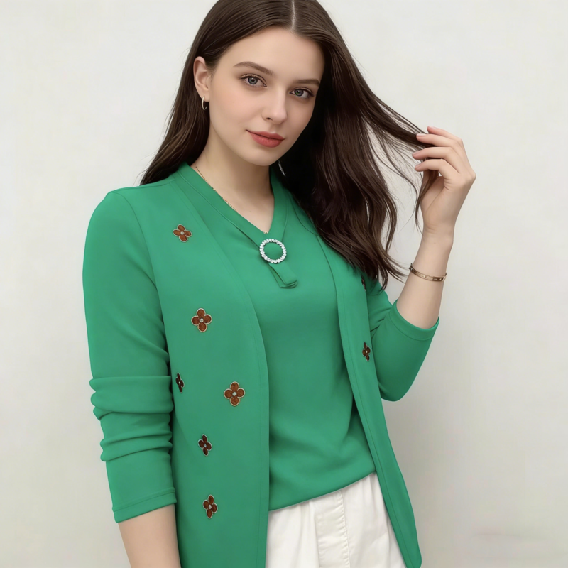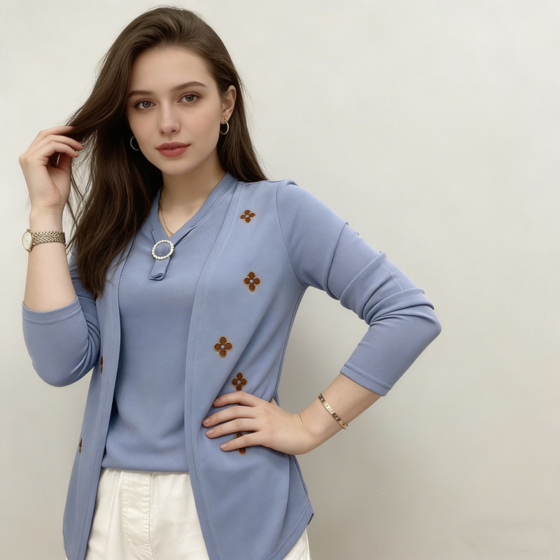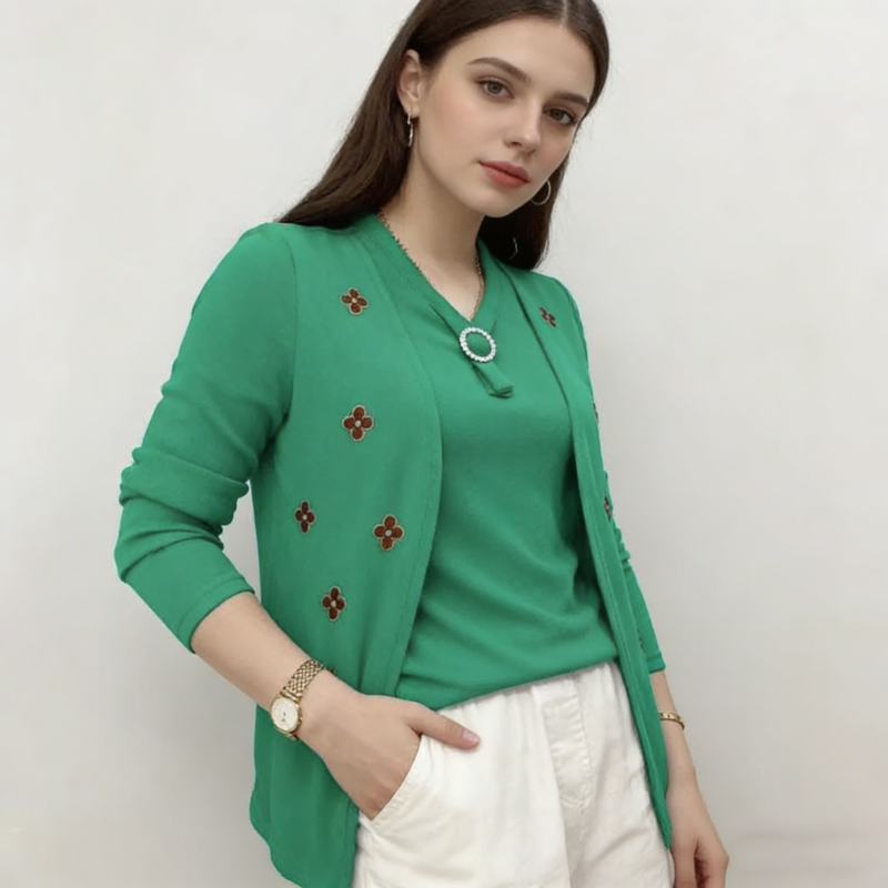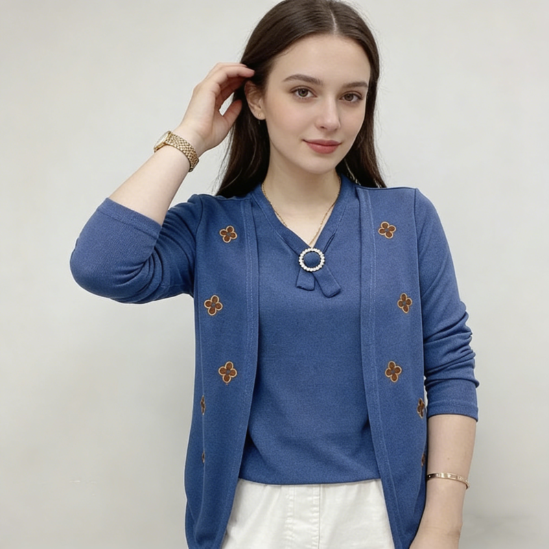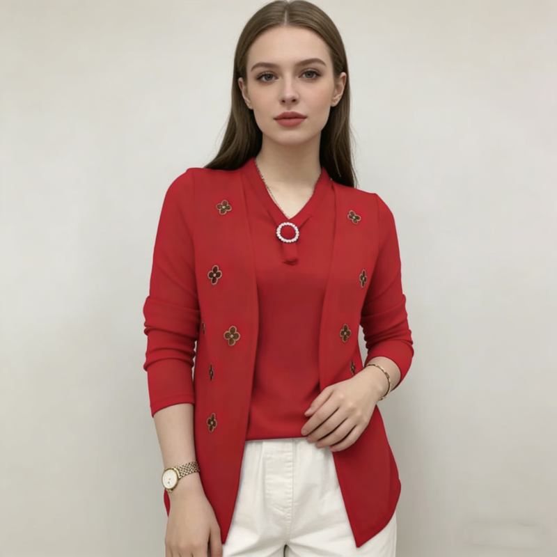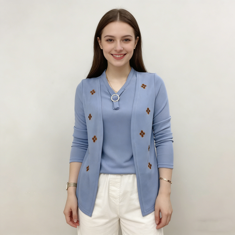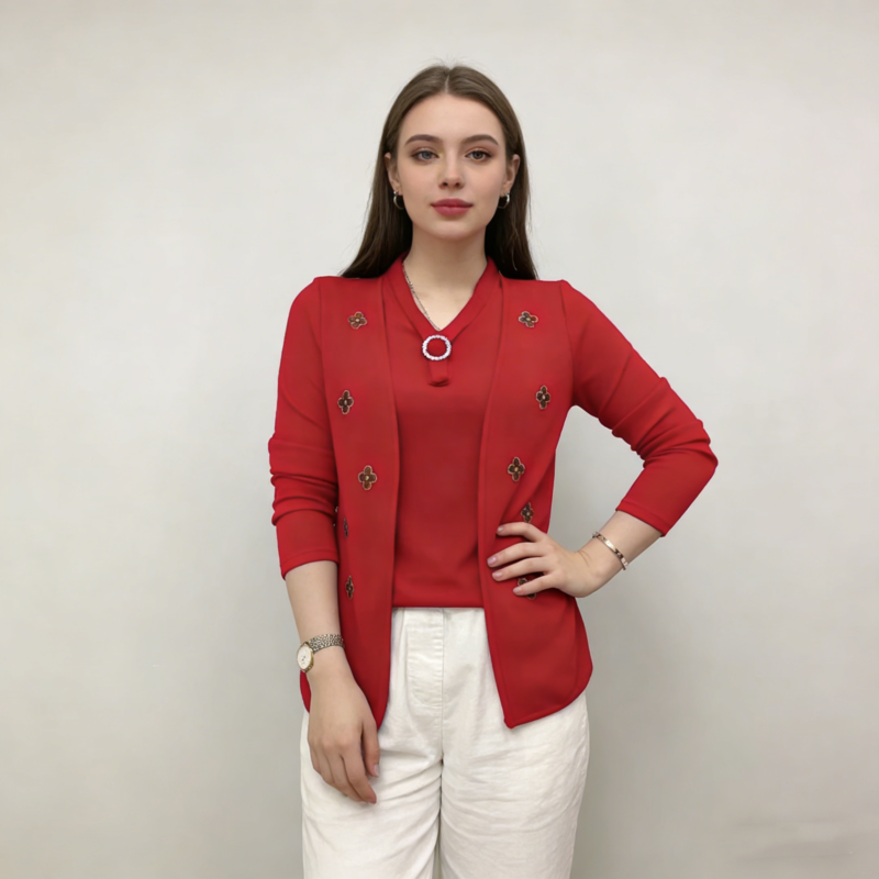 Elegáns női blúz „ál-kétrészes” dizájnnal – puha anyag, kellemesen meleg