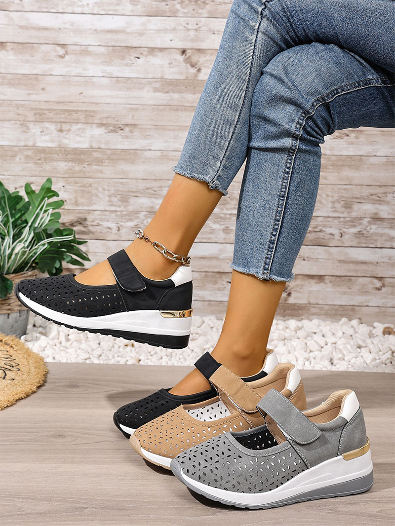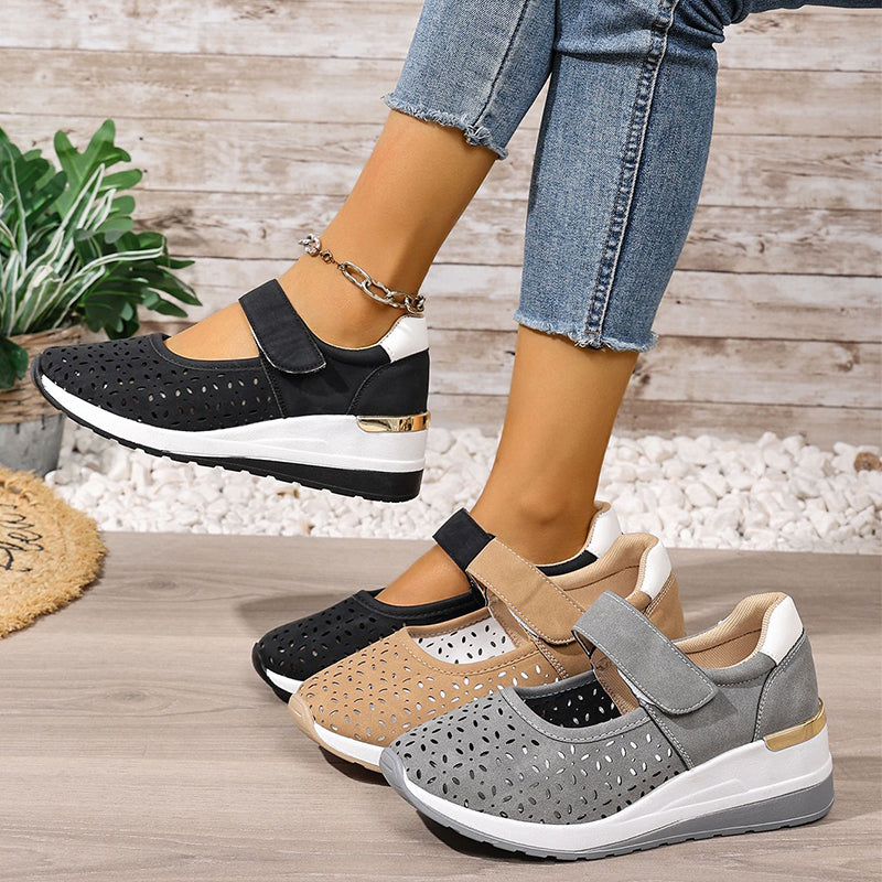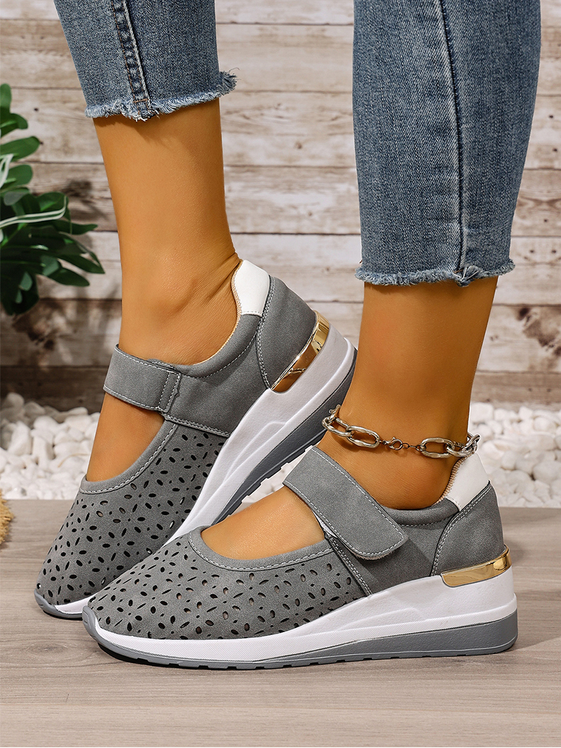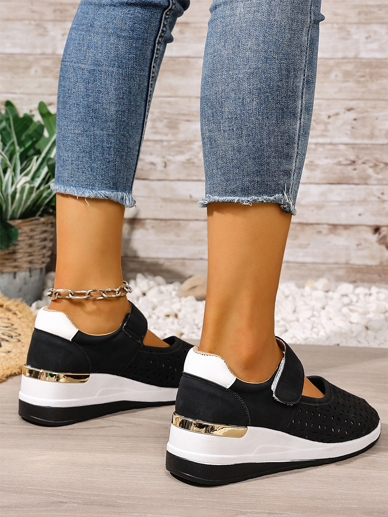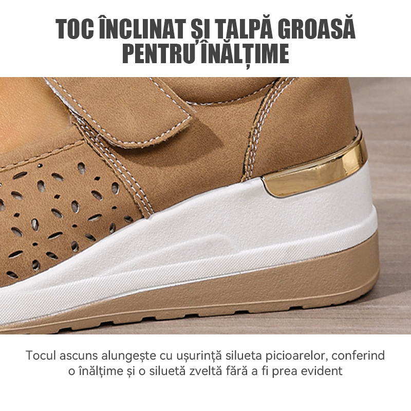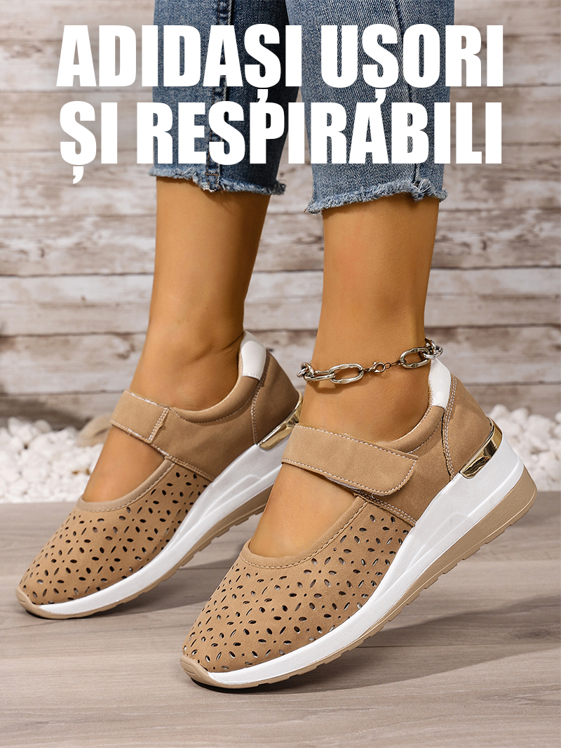 Pantofi casual cu talpă ortopedică tip wedge, perforați, cu închidere velcro