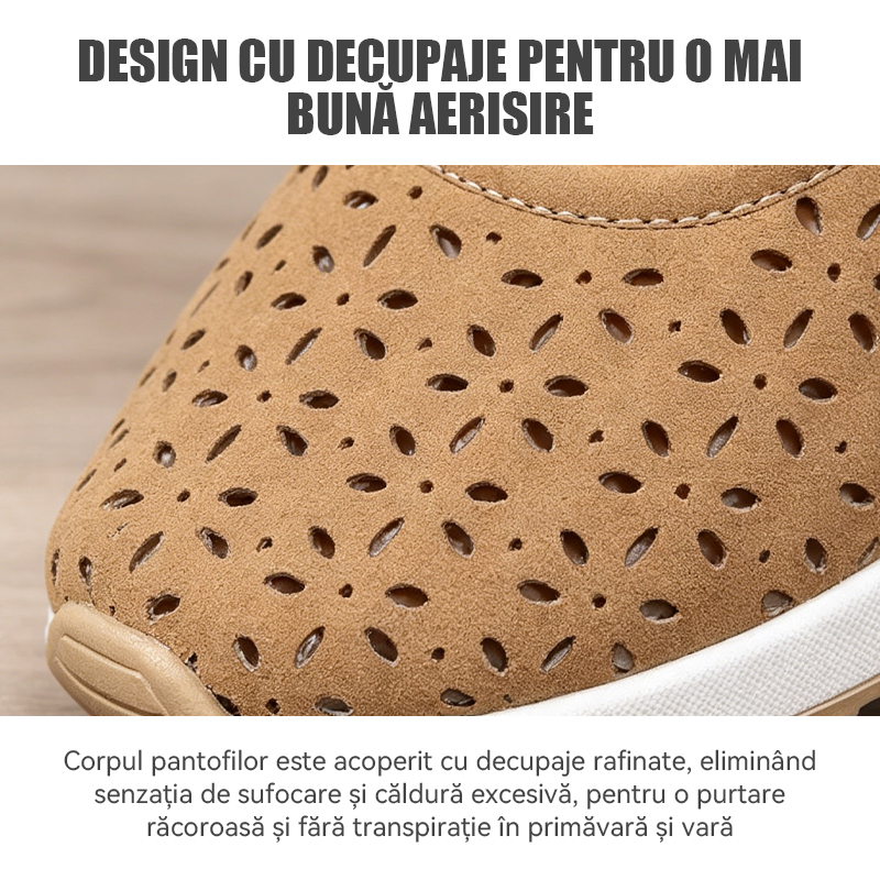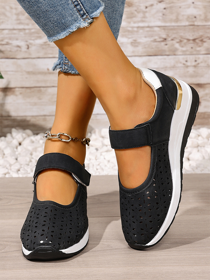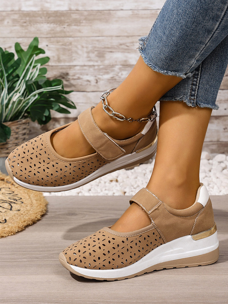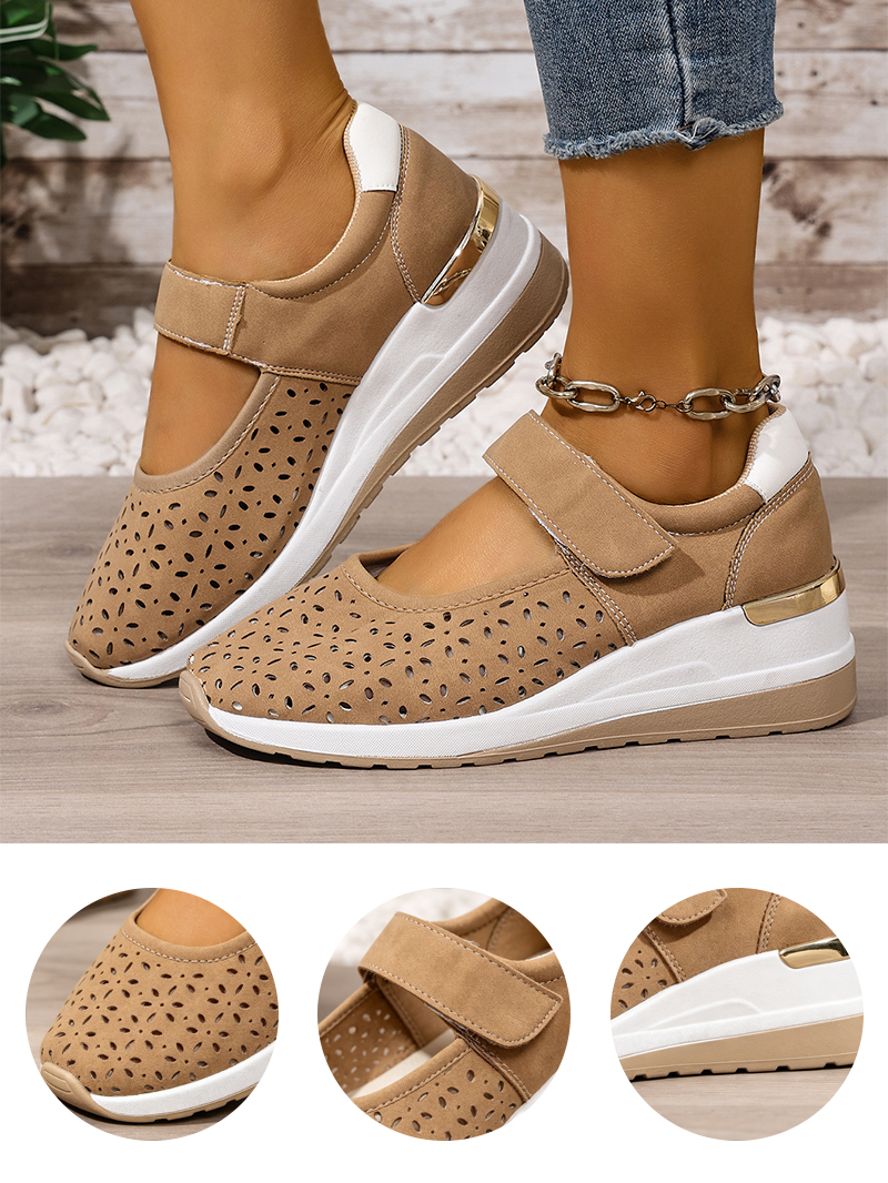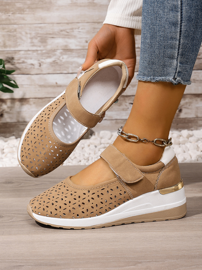 Pantofi casual cu talpă ortopedică tip wedge, perforați, cu închidere velcro