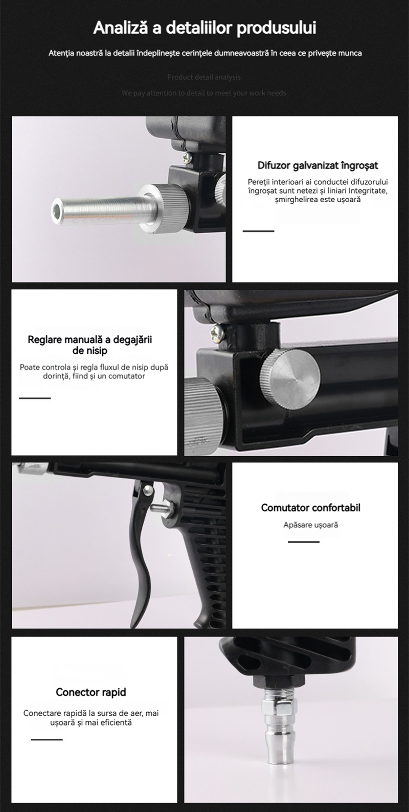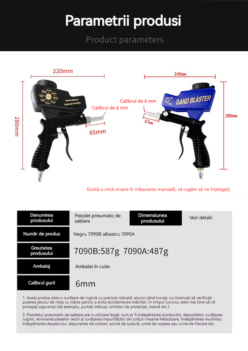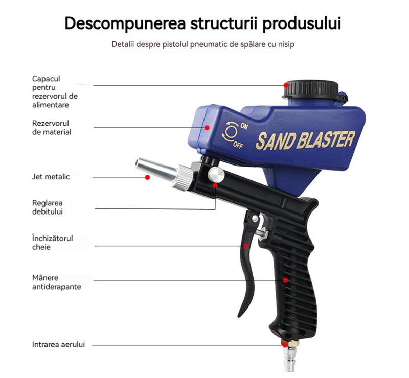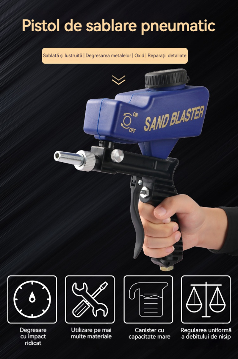 Pistol Pneumatic de Sablare Profesional - Îndepărtare Rapidă a Ruginii, Reglabil și Portabil pentru Restaurări