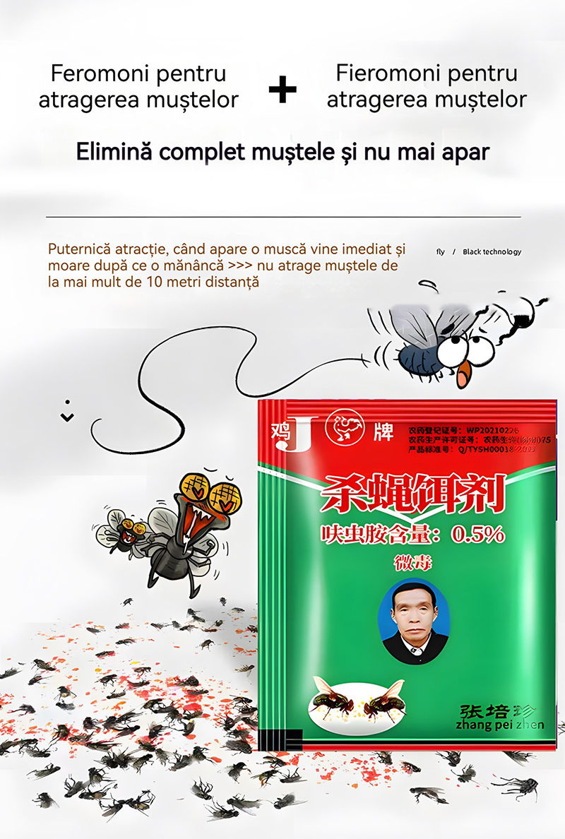 Soluție eficientă contra muștelor | Momeală profesională – 50 pachete